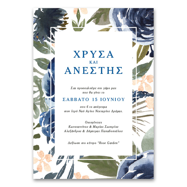 Προσκλητήριο με Πλαίσιο Μπλε Ανθικό
