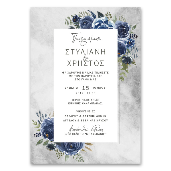 Προσκλητήριο Μοντέρνο Μπλε Ανθικό