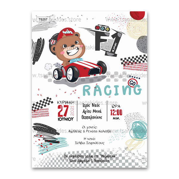 Προσκλητήριο Βάπτισης – Αρκουδάκι Φόρμουλα 1