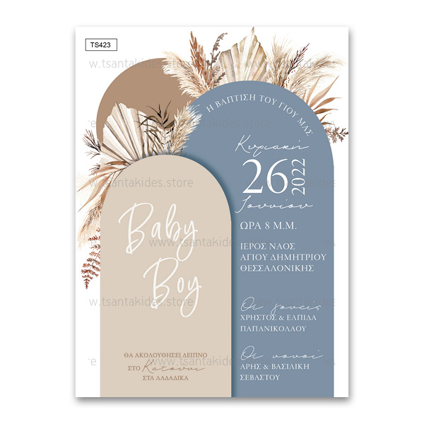 Προσκλητήριο Bάπτισης για αγόρι, Boho Baby Boy