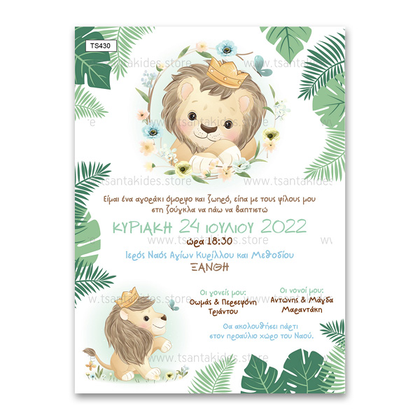 Ετικέτες: Lion King, Βάπτιση Αγόρι, Οικονομικά προσκλητήρια βάπτισης, Πρωτότυπα προσκλητήρια βάπτισης