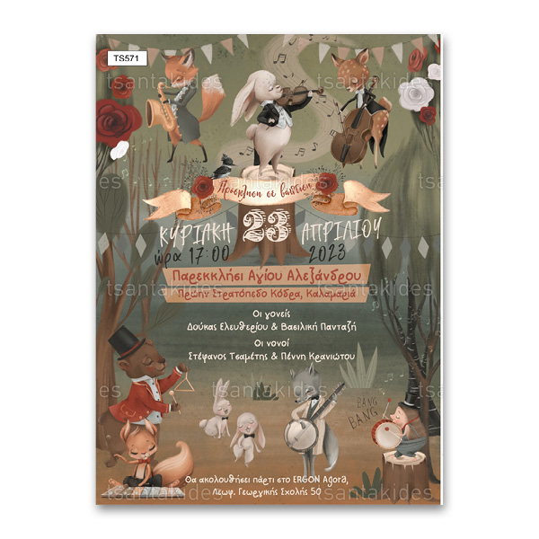 Προσκλητήριο Βάπτισης για αγόρι Woodland Musicians