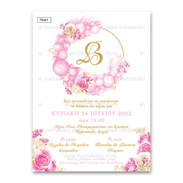 Προσκλητήριο Βάπτισης για κορίτσι, Balloon Circle