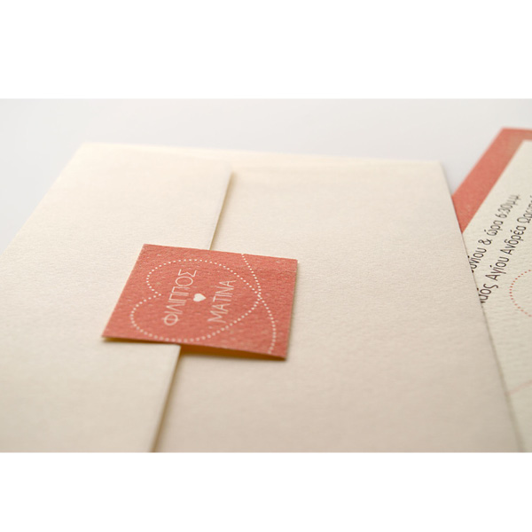 Φάκελος ορθογώνιος γκοφρέ ιβουάρ και κάρτα με θέμα καρδιά.