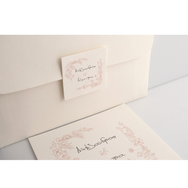 Φάκελος ορθογώνιος γραμμωτός ζαχαρί και Κάρτα γραμμωτή ζαχαρί με θέμα nude λουλούδια.