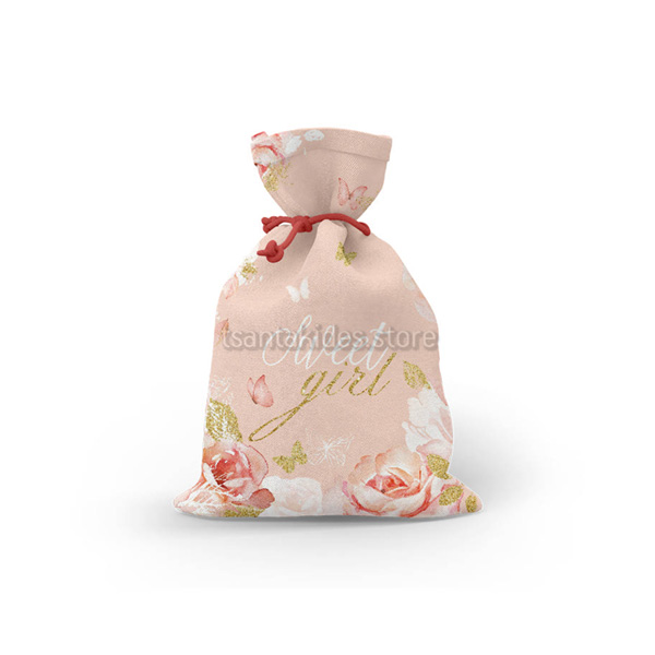 Mπομπονιέρα σε Υφασμάτινο πουγκί με Θεματική το Λουλούδια.