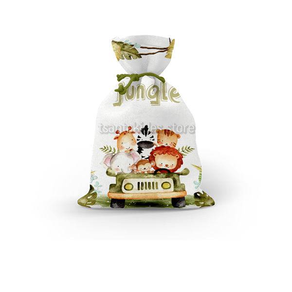 Mπομπονιέρα σε Υφασμάτινο πουγκί εκτυπωμένο με θέμα το Safari Animals.