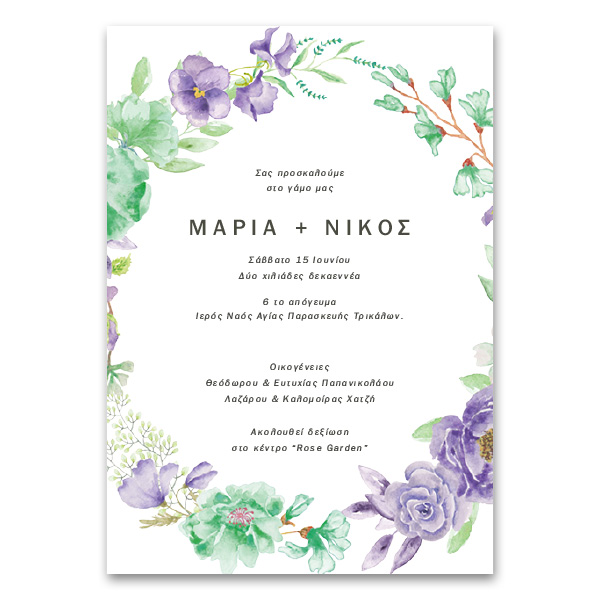 Το εντυπωσιακό στυλ της floral πρόσκλησης, με υπέροχο χρώμα, τυπώνεται σε χαρτί πολυτελές και περιλαμβάνει κομψό φάκελο για να μεταφέρει στους αγαπημένους σας τα χαρμόσυνα νέα.