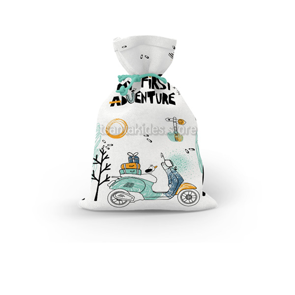 Mπομπονιέρα σε Υφασμάτινο πουγκί εκτυπωμένο με θέμα το Vespa Travel.