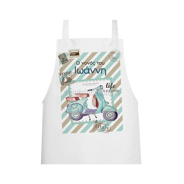 Ποδιά Νονού / Νονάς εκτυπωμένη με θέμα το Ταξίδι με Βέσπα.