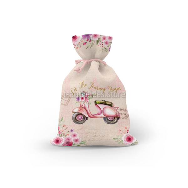 Mπομπονιέρα σε υφασμάτινο πουγκί με Θεματική τη Βεσπά Κορίτσι.