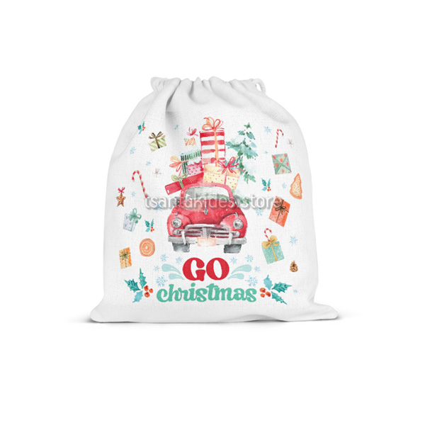 Υφασμάτινο πουγκί δώρου εκτυπωμένο με θέμα Xmas Red Truck.