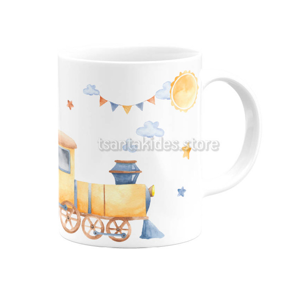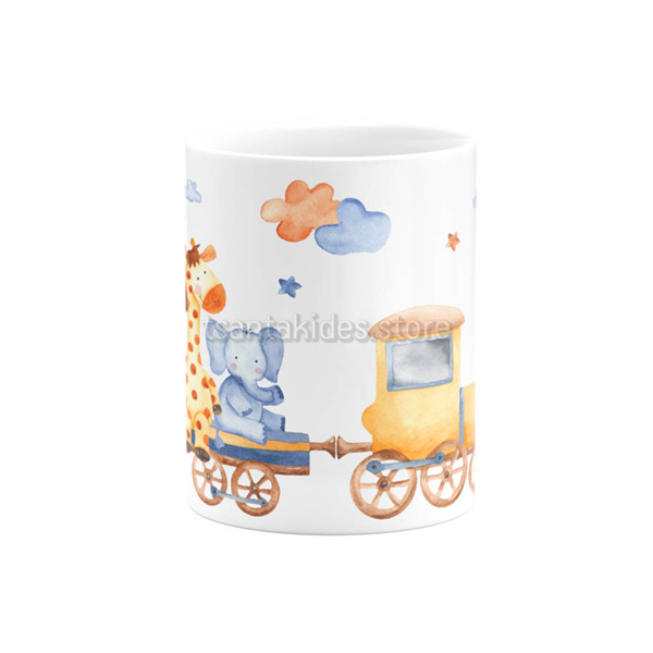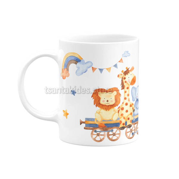 Ζωάκια στο Τρενάκι Κεραμική Κούπα για Βάπτιση Αγόρι