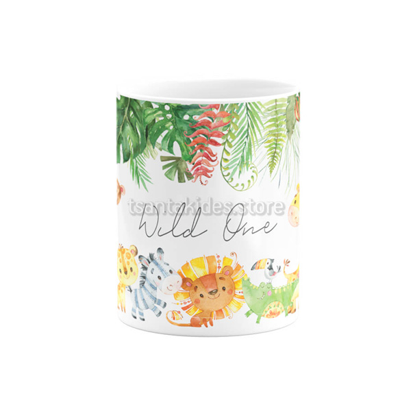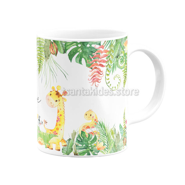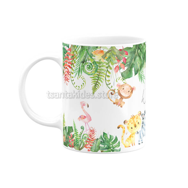 Ζωάκια της Ζούγκλας Κεραμική Κούπα για Βάπτιση Αγόρι